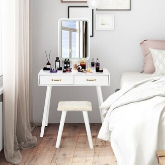 Mcgraw solid wood vanity set with stool and mirror. Beautiful white wooden dressing table with a matching cushioned stool, 10 led lighted oval makeup mirror gives a warm glow at night, 360° rotating mirror can be adjusted to multiple angles. 5 drawer vanity makeup table & light lamp dressing wood desk set with stool. 61'' h x 27.5'' w x 18.8'' d; Rated 5 out of 5 stars. Come with the mirror, table and stool. Sold and shipped by costway. Rated 4.5 out of 5 stars. The mckown vanity set with mirror and stool is a classically beautiful makeup station that will take you back to the victorian era. $50.00 coupon applied at checkout. Makeup vanity desk sale *see offer details. Light up a bedroom with this beautiful transitional vanity set. Vanity table round led lights mirror 2 drawers makeup dressing desk set bedroom.